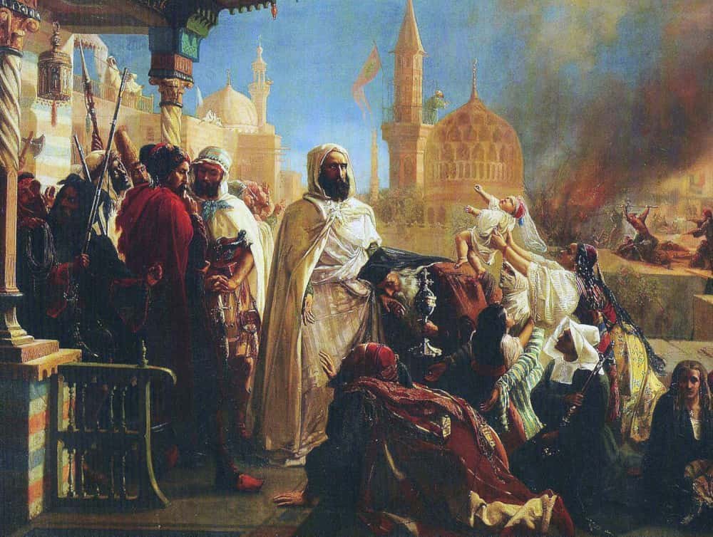 Tableau de Jean-Baptiste Huysmans représentant l’émir Abdelkader, protégeant les chrétiens à Damas en 1860, lors des massacres commis par les Druzes.