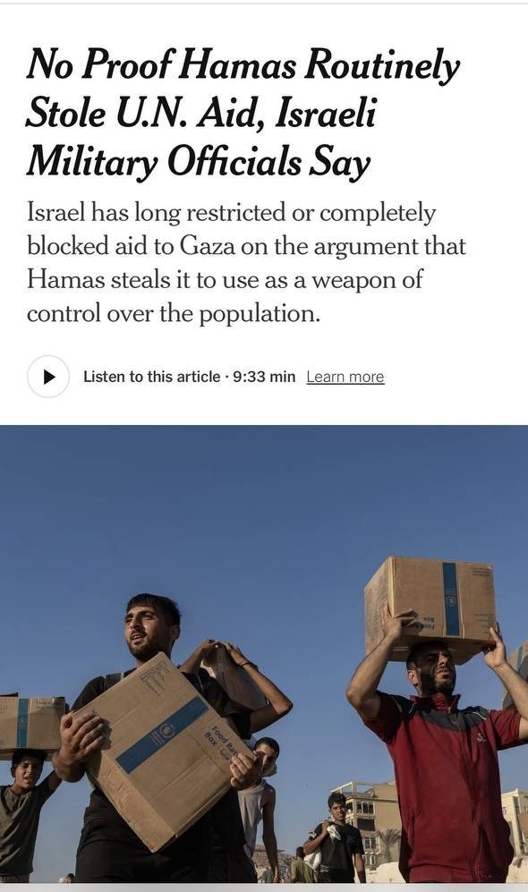 Mais l’armée israélienne « n’a jamais fourni de preuve » que le groupe palestinien avait systématiquement détourné l’aide des Nations Unies, principal fournisseur d’aide d’urgence à Gaza depuis le début du génocide, selon deux hauts responsables militaires israéliens.