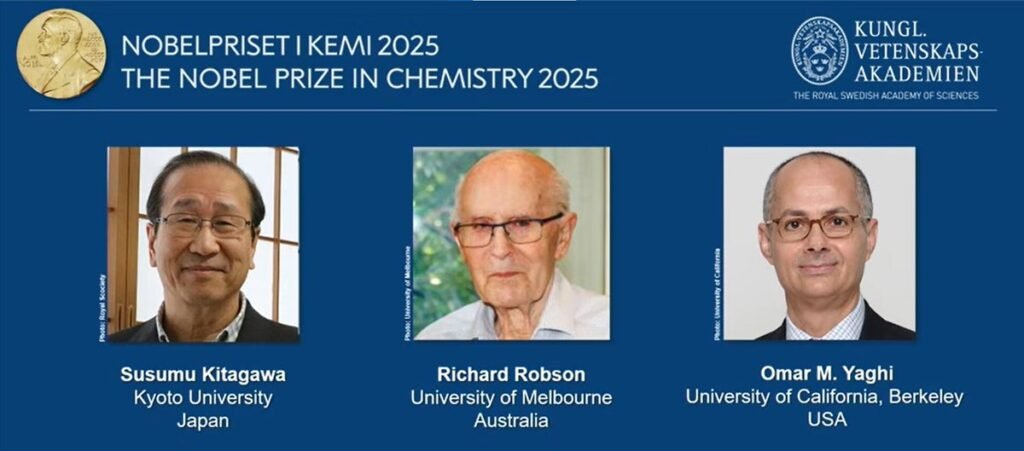 Ce mercredi 8 octobre, le prix Nobel de chimie 2025 a été attribué à un trio composé du Japonais Susumu Kitagawa, du Britannique Richard Robson et de l’Américano-Jordanien Omar M. Yaghi pour leurs travaux sur « le développement d’une forme complètement nouvelle d’architecture moléculaire ».