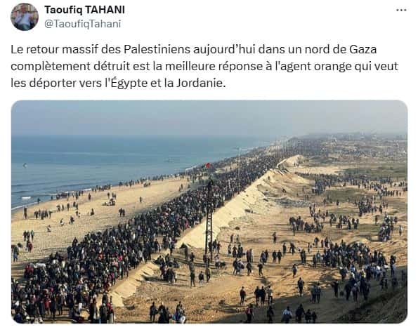 Les Palestiniens déplacés ont commencé lundi matin à regagner le nord de la bande de Gaza, a indiqué un responsable du ministère de l’Intérieur du Hamas, après des avancées dans les négociations avec Israël en vue de la libération prochaine d’otages. Le mouvement palestinien a qualifié ce retour de « victoire contre les plans d’occupation » et les tentatives de « déplacement » forcé des Palestiniens.