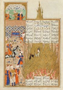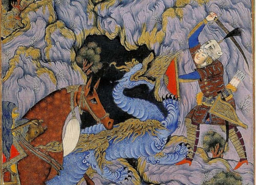 Combat de Rostam et du dragon, page du Shâhnâmeh de Ferdowsi, Ispahan, 1648. Windsor, The Royal Collection Trust.
