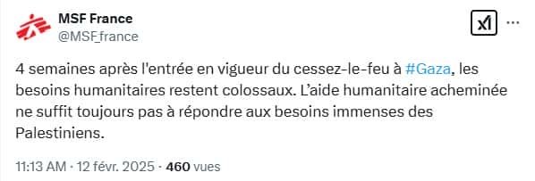 Ce lundi, le Hamas a annoncé le report de la prochaine libération des prisonniers israéliens « jusqu’à nouvel ordre », accusant Israël de ne pas honorer les termes du cessez-le-feu. Mardi, le Premier ministre israélien Benjamin Netanyahou a exigé que les captifs israéliens à Gaza soient libérés d’ici samedi midi, menaçant, dans le cas contraire, de mettre un terme à la trêve et de relancer la guerre dans l’enclave palestinienne.