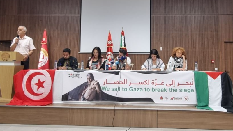 Cet été, « nous assisterons à la plus grande flottille civile de l’histoire », a déclaré Haifa Mansouri, l’une des organisatrices, durant la conférence tenue ce lundi au siège de l’Union générale tunisienne du travail (UGTT). Cette opération, qualifiée de « dynamique de résistance », regroupe plusieurs initiatives : la « Flottille de la Solidarité maghrébine », la « Flottille de la Liberté », le « Mouvement mondial pour Gaza », ainsi que l’initiative est-asiatique Sumud Nusantara.