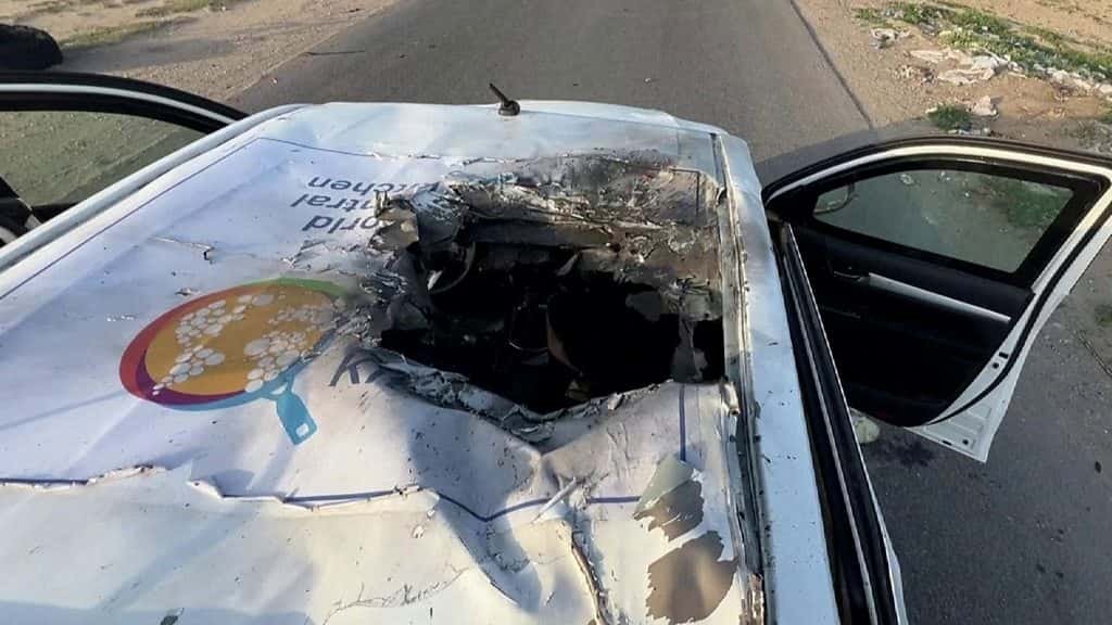 « L’équipe se déplaçait dans une zone sans combat à bord de deux voitures blindées portant le logo du WCK et d’un véhicule non blindé »