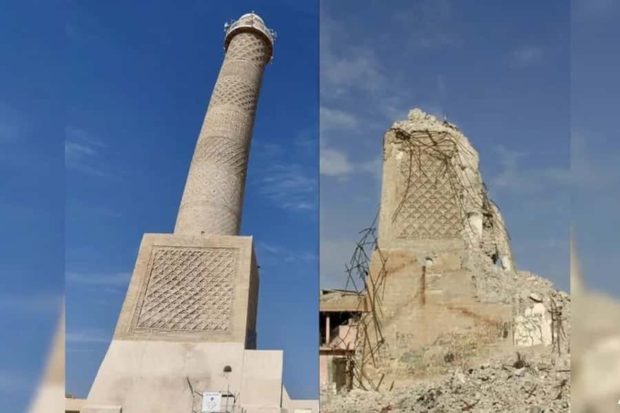 Ce lieu est particulièrement symbolique car c’est à Al-Nouri que l’ancien chef de Daesh, Abou Bakr al-Baghdadi, avait proclamé son « califat » en juillet 2014. Surnommé « la bossue » (Hadba) en raison de son inclinaison, le minaret a été rebâti avec son inclinaison originale de 160 cm, « comme les habitants de Mossoul le souhaitaient ».