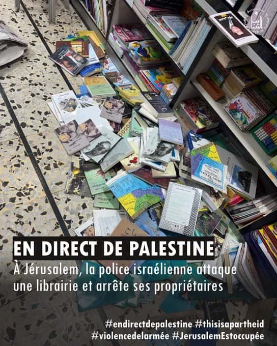 Indignation face au raid de la police israélienne hier soir dans la librairie Educational Bookshop à Jérusalem Est et l’arrestation de ses gérants Ahmad et Mahmoud Muna. Ces attaques contre une librairie et institution culturelle renommée de Jerusalem constituent une atteinte… pic.twitter.com/e2dbiznAO8
