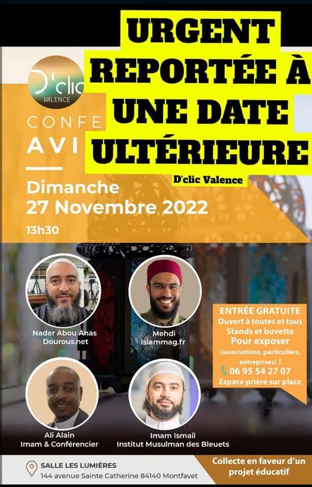L’événement devait se tenir ce dimanche 5 mars à Brétigny-sur-Orge. Une salle de 900 personnes devait accueillir 5 prédicateurs musulmans invités par l’association Les Profs Studio. Le sujet de l’intervention « En route vers l’apprentissage » était consacré à l’éducation des enfants. « Enseigner une certaine vision de l’islam à des enfants pour former les musulmans de demain » selon le mot des organisateurs. Mais le public n’a pas pu y assister. Comme plusieurs autres conférences de même nature, des arrêtés municipaux se sont opposés à leur tenue. Sur Twitter, le maire de Brétigny-sur-Orge Nicolas Méary annonçait sa décision d’interdire l’événement au nom de « troubles graves à l’ordre public », justificatif brandi contre les 5 conférenciers qualifiés par l’élu de « prédicateurs et influenceurs islamistes ». « Après analyse juridique en lien avec le préfet et le ministère de l’Intérieur, et au vu des risques de troubles graves à l’ordre public, j’ai pris un arrêté interdisant cette manifestation » écrivait-il, appelant à « garantir la libre pratique religieuse, et notamment celle de nos concitoyens musulmans, et être fermes face au séparatisme. »Plusieurs conférences annulées