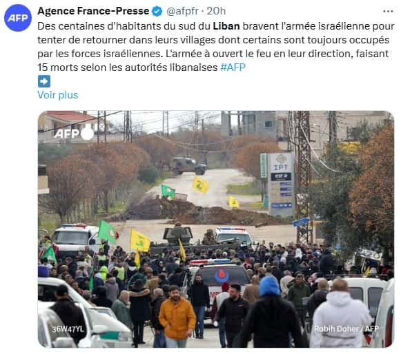 Ce lundi, les Etats-Unis a annoncé un prolongement de l’accord de cessez-le-feu au Liban jusqu’au 18 février, une décision acceptée par les autorités libanaises. Les Casques bleus de l’ONU ont souligné que les conditions d’un retour des habitants ne sont « pas encore réunies » et ont appelé Israël à « éviter de tirer sur des civils en territoire libanais ».
