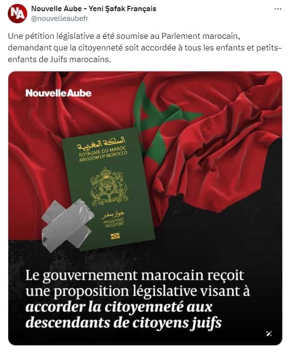 Présentée par un certain Houssain Ben Messaoud, la pétition propose d’accorder la nationalité marocaine à « tous les enfants et petits-enfants de juifs marocains, sujets du Commandeur des Croyants ».
