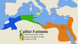 Le dirigeant de la dynastie fatimide, Ubayd Allah al-Mahdi, qui vit le jour en Afrique du Nord au début du Xème siècle, était considéré par les Musulmans chiites de la branche ismaélienne comme le successeur du Prophète, ainsi que comme le chef spirituel légitime de la communauté musulmane. En 969, les Fatimides prirent le contrôle de l’Égypte et fondèrent Le Caire. À son apogée, le Califat fatimide s’étendait jusqu’à la Syrie et la Terre Sainte, mais dès le XIIème siècle il se mit à décliner jusqu’à sa chute en 1171.