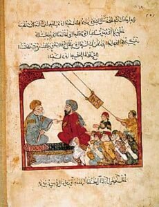 La « fermeture » pose avant tout deux problèmes : c’est d’abord une « impossibilité technique » ; ensuite une erreur factuelle.Impossibilité technique au sens où les sciences islamiques traditionnelles exclues la possibilité même de « fermer » l’ijtihâd ; erreur factuelle, car cela contredit l’histoire intellectuelle du monde musulman. Deux points que nous allons aborder ici.« Impossibilité technique » d’abord. Parler de « fermeture des portes de l’ijtihâd (insadda bâb al-ijtihâd) » soulève d’emblée quatre questions : la cause de la « fermeture » ; la date présumée retenue (qui doit donc reposer sur un fait) ; l’identité de celui/ceux qui l’ont déclarée ; l’acceptation, par les autres oulémas, de cet état de fait (c’est-à-dire le consensus autour de ladite fermeture).Or les partisans de la thèse n’avancent aucune réponse à ces questions, sauf une (la première) : la fermeture est toujours annoncée comme un fait sans origine (ni date, ni acteur ; mais pour cause : il n’y en a pas) réputée consensuelle, sans qu’aucune preuve ne soit apportée.La cause identifiée serait la fossilisation juridique : les savants, à un moment de l’histoire, cessèrent de penser pour se contenter d’imiter (al-taqlîd).Impossibilité technique donc : j’ai rappelé que l’ijtihâd est assimilé à l’idée même de charia : pour les usulistes (uṣûliyyine, spécialistes des uṣūl-s : fondements du droit), l’ijtihâd est une obligation collective (fard kifâya) qui doit obligatoirement être assumée par au moins une personne dans la Communauté, sous peine de deux choses : encourir la colère divine (pour non-respect d’une obligation) ; voir s’effondrer la charia.Tableau du peintre Osman Hamdi.Ce risque d’effondrement, pour les oulémas, est évident : dans la formule de Shirâzî (m. 1083) citée plus haut, l’identification du fiqh à l’ijtihâd est totale : le premier dépend du second.De même pour le grand savant malékite et muḥaddith Ibn ‘Abd al-Barr (m. 1072) les questions juridiques inédites étant infinies, seuls le qiyâs et l’ijtihâd permettent que la charia puisse répondre aux besoins de la société.L’une des plus grandes autorités religieuses de l’islam, le polymathe chaféite Jalâl al-Dîn Suyûtî (m. 1505), l’affirme clairement : sans ijtihâd la charia serait anéantie, par conséquent, l’ijtihâd est l’épine dorsale de la charia et sans elle, aucune décision juridique ne peut être prise.Le seul consensus connu est donc bien celui-ci : pas de fiqh possible sans ijtihâd (Hallaq, 1984). On se demande donc comment il aurait pu être « fermé ».Méprise historique ensuite. Si l’impossibilité technique d’une fin de l’ijtihâd est l’argument théorique majeur en faveur d’une nécessaire permanence de celui-ci, l’histoire intellectuelle offre quant à elle la preuve par les faits : aucun siècle, aucun ensemble géographique n’ont été dépourvus de mujtahid-s depuis le 9e siècle. Cela aurait été de toute façon impossible.Pourquoi ? Car à cette époque l’élaboration doctrinale des Écoles n’est de toute façon pas encore achevée. Les Écoles, au 9e siècle, possèdent bien leurs fondements, mais pas les détails.Al Hariri, Maqamat (les séances).Il faut attendre les compléments essentiels de grands mujtahid-s postérieurs, justement, qui vont rendre opératifs l’architecture conceptuelle et méthodologique élaborée avant eux, réorganisant, synthétisant, perfectionnant les éléments laissés par leurs aînés : en faisant donc œuvre d’ijtihâd.L’école hanbalite, par exemple, ne connaît son plein épanouissement qu’avec le grand œuvre d’Ibn Qudâma al-Maqdisî (mort au 13e siècle), qualifié de Cheikh al-Islâm[10] : al-Mughnî.De même pour l’École hanafite, pourtant la plus ancienne des quatre, et bien qu’elle ait connu un fort développement précoce : aux 11e et 12e siècles, d’importantes réformes et sophistications sont intervenues, donnant davantage de force aux fondements de l’École.Des figures telles que le grand savant et théologien Al-Juwaynî (m. 1083), et son élève Al-Ghazâlî (m. 1111) seront sources majeures de renouvellement des uṣûl-s de l’École chaféite.Al-Ghazâlî est unanimement considéré comme le mujaddid – « rénovateur » de la religion – de son siècle, car il a offert une magistrale récapitulation des fondements de l’islam – dans ses trois composantes théologiques, juridiques et spirituelles[11].Bien plus qu’un simple synthétiseur, il redonna aux uṣûlal-fiqh ses lettres de noblesse, constituant une œuvre fondamentale pour son madhhâb, mais aussi pour le Droit islamique en général, ainsi que pour la théologie.Son livre Al-Muṣṭafâ est reconnu comme l’ouvrage d’uṣûl le plus riche et méticuleux.Ce titre de mujaddid est de source prophétique : un ḥadîth indique que chaque siècle verra un mujaddid redonnant fraîcheur à la religion, le tajdîd (« renouvellement »).Cette annonce prophétique, pour les savants classiques, est d’ailleurs un des arguments rendant nécessaire l’ijtihâd, donc impossible son arrêt, a minima par l’œuvre d’un mujaddid.Au cours de l’histoire les oulémas vont régulièrement rechercher, pour chaque siècle, le mujaddid correspondant : il s’agira chaque fois des savants ayant le plus marqué leur époque et les décennies suivantes par la grandeur, le caractère séminal et réformateur de leur œuvre.Ijtihâd et tajdîd, sans être synonymes, sont donc intimement liés. Ainsi, pas un seul siècle sans que, non pas une, mais plusieurs figures intellectuelles n’apparaissent comme remarquables, même si le commun des musulmans les a oubliés aujourd’hui.Mais certains noms demeurent, y compris dans la mémoire collective de la masse des croyants : comment dire que l’ijtihâd fut fermé au 9e siècle, quand d’imm