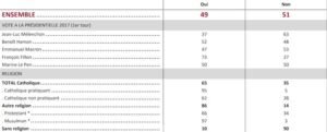 La question ne concerne pas seulement ce sondage mais les sondages, leur méthode, leur usage et les conclusions qui en sont tirés. Expliquons-nous. Les sondages fonctionnent sur la méthode connue de l’échantillonnage représentatif par catégorie. Il s’agit de prendre comme dans ce sondage un échantillon de 1000 personnes établi de la manière suivante : la même répartition proportionnelle de la population française en fonction du sexe, de l’âge et de la catégorie socio-professionnelle se retrouve dans l’échantillon. S’il y avait 30 % d’ouvrier en France, 300 ouvriers feraient donc partie de l’échantillon de 1000 personnes. Même chose pour les autres catégories. Les résultats sont ensuite extrapolés à l’ensemble de la population en fonction dela représentativité des catégories.