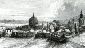 Illustration de Jérusalem, ville trois fois sainte.SM : Les Templiers représentaient pour les musulmans un modèle mêlant religiosité et militantisme guerrier. Pour donner un parallèle moderne, ils ont été perçus de la même manière que les musulmans d’aujourd’hui se représentent Daesh : des hommes fanatiques. Ils apportent à leurs combats une sorte de zèle religieux, et à leur religion une sorte de militantisme.