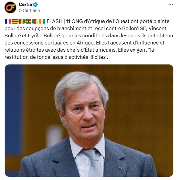 Mardi 18 mars, le collectif Restitution Afrique (RAF), regroupant onze ONG d’Afrique de l’Ouest, a déposé une plainte contre le groupe de Vincent et Cyrille Bolloré auprès du Parquet national financier (PNF) à Paris. Dirigé par Jean-Jacques Lumumba, ce collectif rassemble des ONG du Togo, Guinée, Ghana, Cameroun, Côte d’Ivoire et de France.